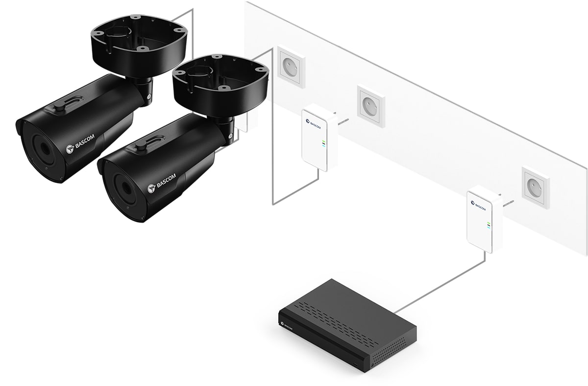 Ce système de vidéosurveillance est équipé de Bascom® POWER, notre technologie révolutionnaire qui transmet les images via le réseau électrique. Il vous suffit de brancher les caméras sur une prise de courant : elles se connectent automatiquement à l’enregistreur en utilisant vos câbles électriques existants. Vous bénéficiez ainsi de la fiabilité d’une connexion filaire, sans avoir à tirer de câbles vous-même.
