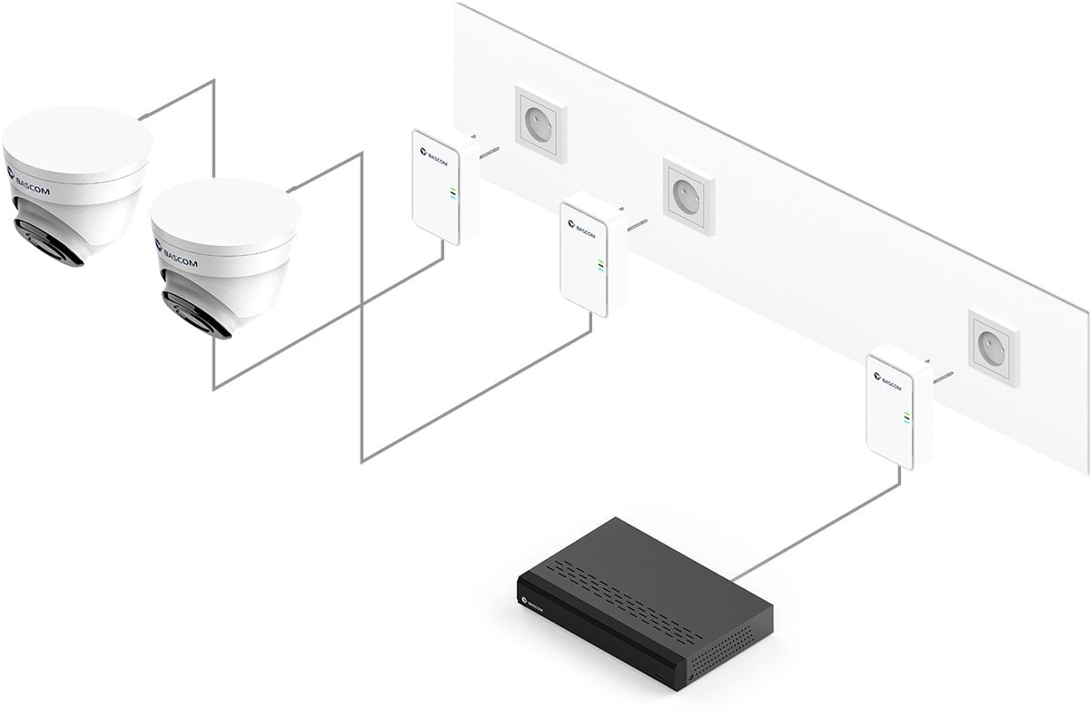 Ce système de vidéosurveillance est équipé de Bascom® POWER, notre technologie révolutionnaire qui transmet les images via le réseau électrique. Il vous suffit de brancher les caméras sur une prise de courant : elles se connectent automatiquement à l’enregistreur en utilisant vos câbles électriques existants. Vous bénéficiez ainsi de la fiabilité d’une connexion filaire, sans avoir à tirer de câbles vous-même.