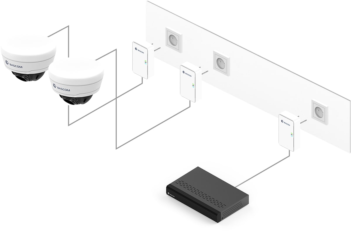 Ce système de vidéosurveillance est équipé de Bascom® POWER, notre technologie révolutionnaire qui transmet les images via le réseau électrique. Il vous suffit de brancher les caméras sur une prise de courant : elles se connectent automatiquement à l’enregistreur en utilisant vos câbles électriques existants. Vous bénéficiez ainsi de la fiabilité d’une connexion filaire, sans avoir à tirer de câbles vous-même.