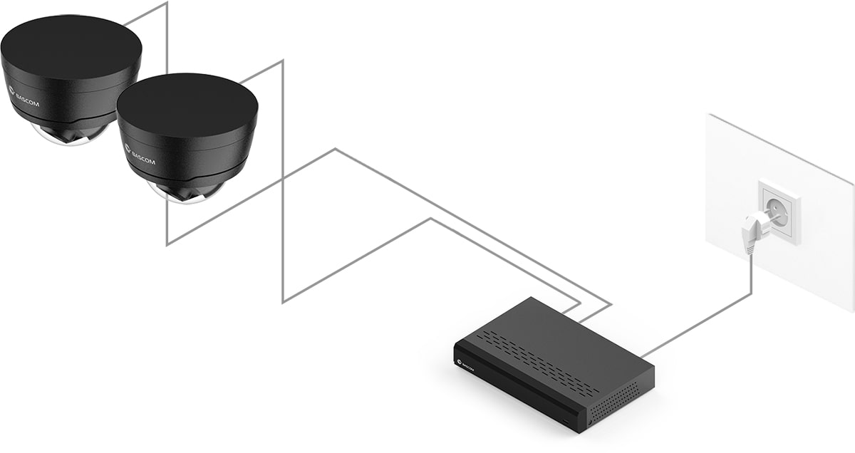 95 % de nos clients n’avaient jamais installé de système de vidéosurveillance auparavant, mais ont pu installer ce système Bascom eux-mêmes. Fixez les caméras au mur ou au plafond, branchez-les et le système fonctionne.