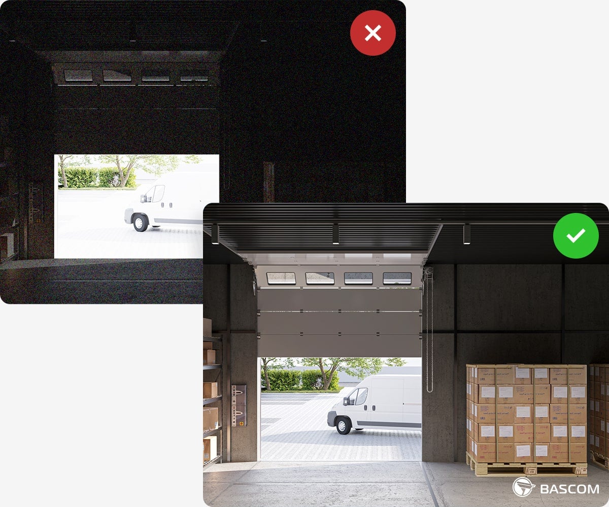 Dès que la lumière faiblit, les caméras Bascom PLUS activent automatiquement leur mode nuit, utilisant une technologie infrarouge avancée. Elles peuvent ainsi fournir une vision claire même dans l’obscurité totale – là où l’œil humain est incapable de distinguer quoi que ce soit – jusqu’à une distance de 30 mètres.