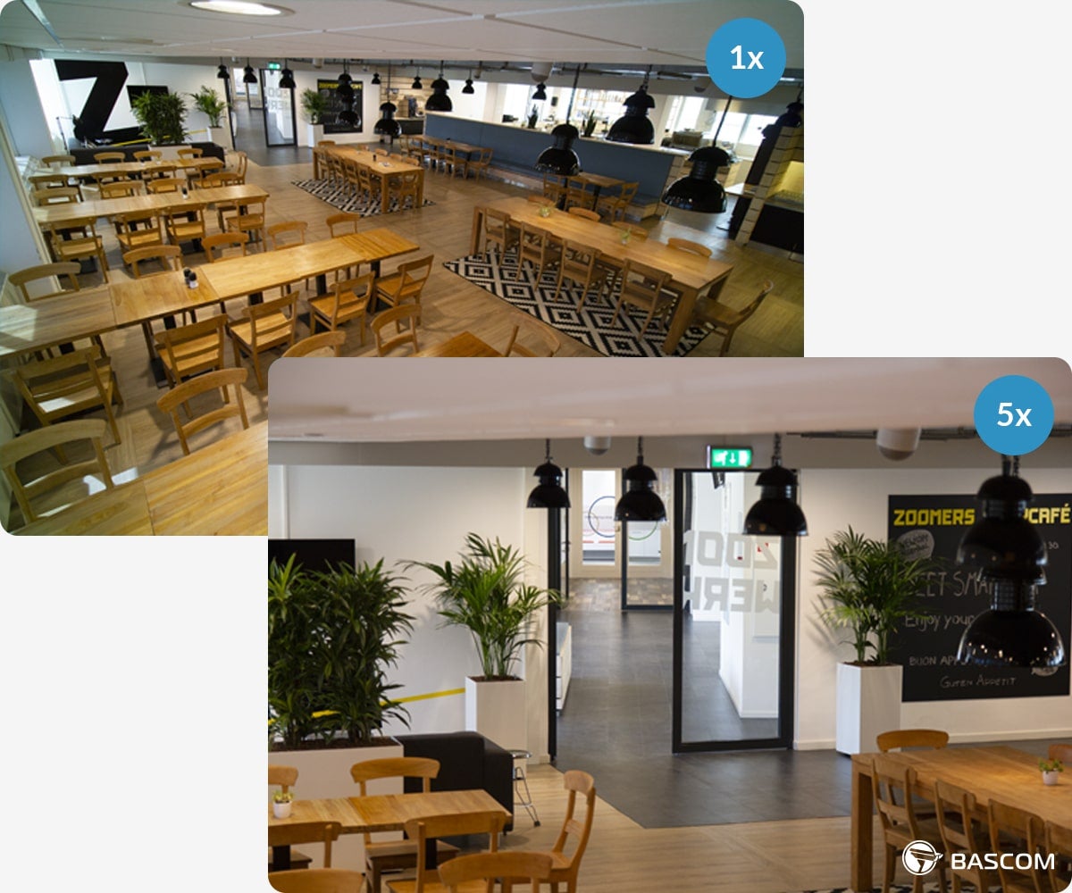 Chaque caméra est équipée d’un objectif haute qualité avec zoom optique. Vous pouvez ajuster le champ de vision jusqu’à 112 degrés pour une vue d’ensemble, ou effectuer un zoom 5x pour voir les détails à distance. L’autofocus intégré garantit une netteté parfaite à tout moment.
