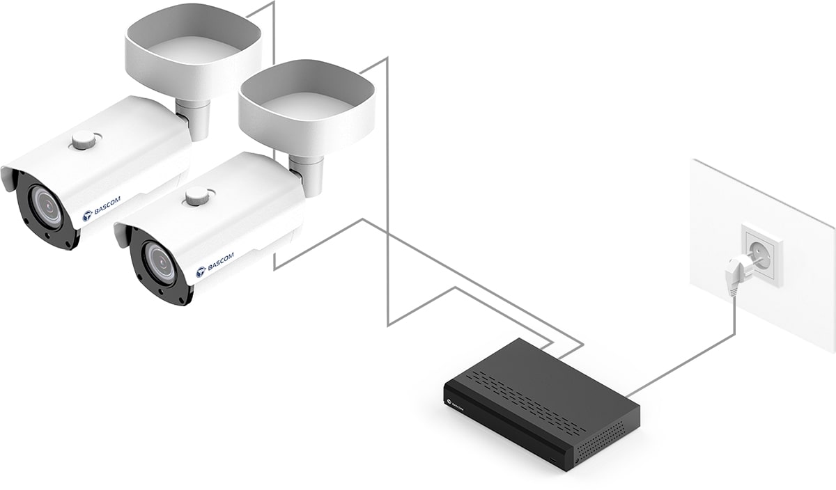 95 % de nos clients n’avaient jamais installé de système de vidéosurveillance auparavant, mais ont pu installer ce système Bascom eux-mêmes. Fixez les caméras au mur ou au plafond, branchez-les et le système fonctionne.