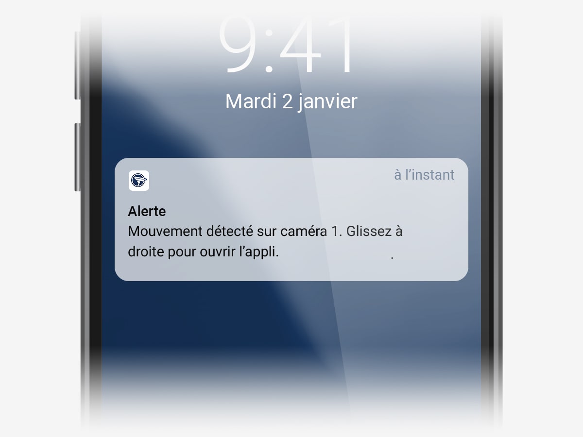 Activez les notifications sur votre smartphone en cas de détection de mouvement. Les caméras de ce système intègrent une détection intelligente basée sur l’IA, capable de distinguer les personnes et véhicules des mouvements sans importance. Vous ne recevez que les alertes qui comptent.
