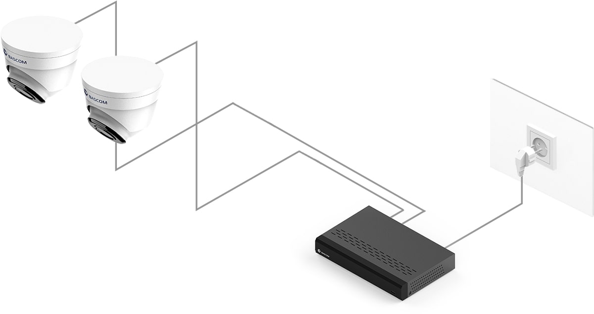 95 % de nos clients n’avaient jamais installé de système de vidéosurveillance auparavant, mais ont pu installer ce système Bascom eux-mêmes. Fixez les caméras au mur ou au plafond, branchez-les et le système fonctionne.