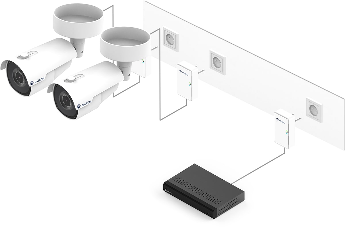 Ce système de vidéosurveillance est équipé de Bascom® POWER, notre technologie révolutionnaire qui transmet les images via le réseau électrique. Il vous suffit de brancher les caméras sur une prise de courant : elles se connectent automatiquement à l’enregistreur en utilisant vos câbles électriques existants. Vous bénéficiez ainsi de la fiabilité d’une connexion filaire, sans avoir à tirer de câbles vous-même.